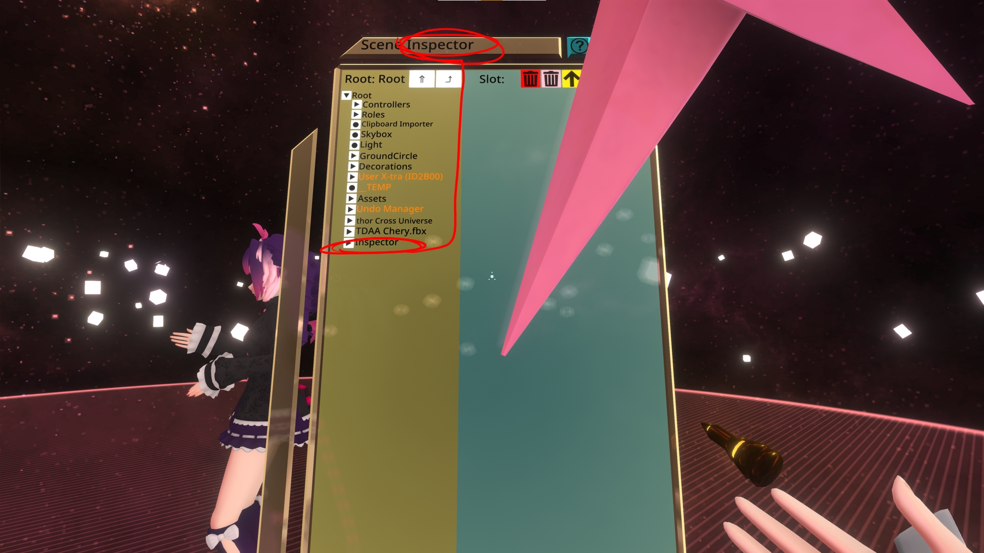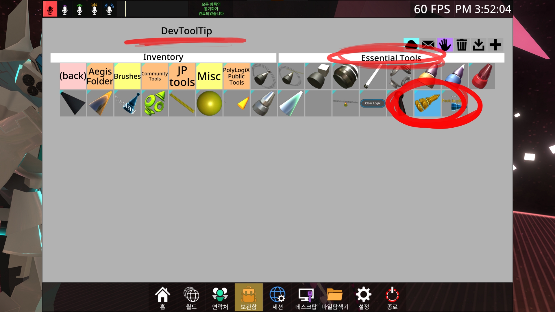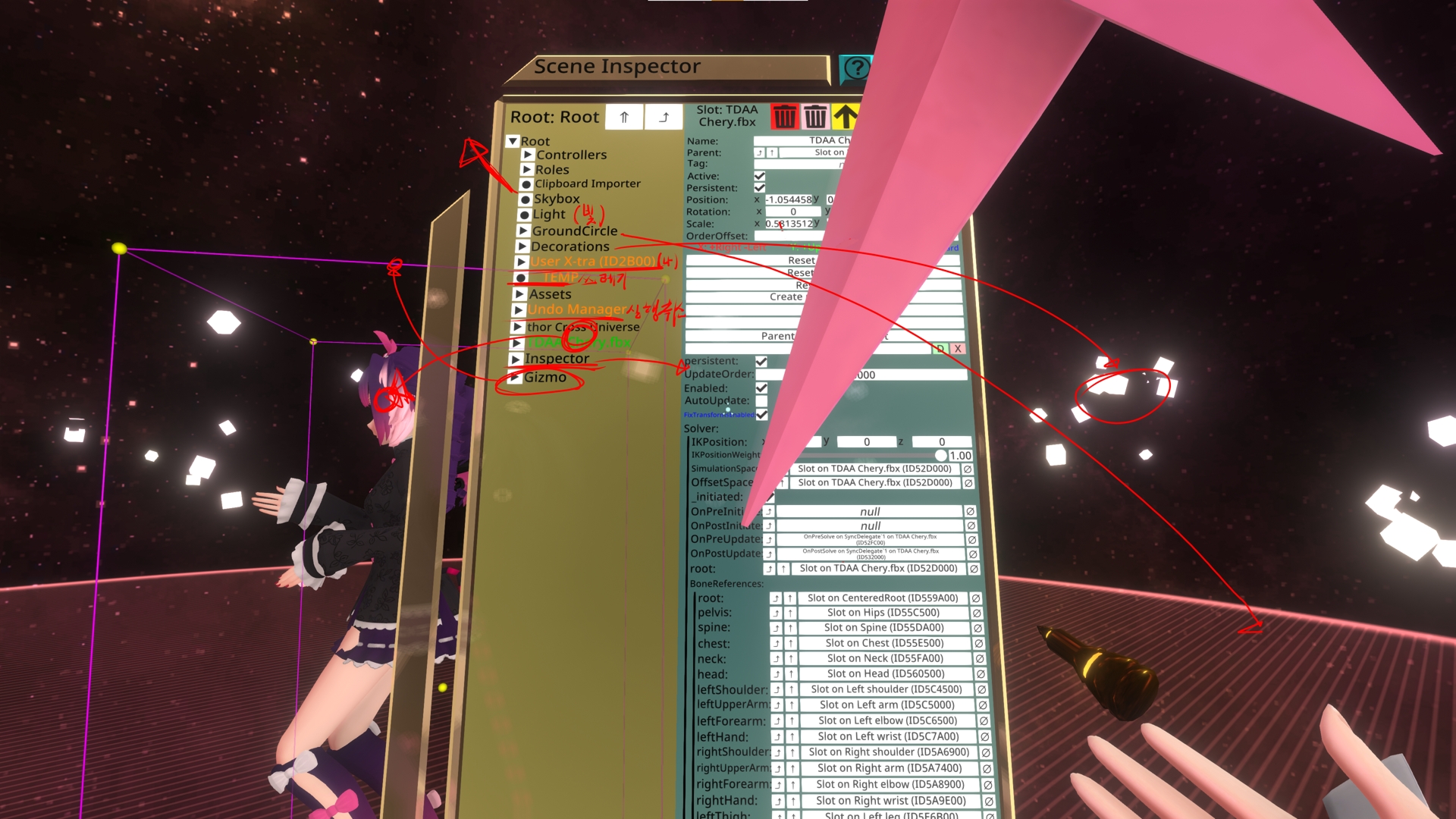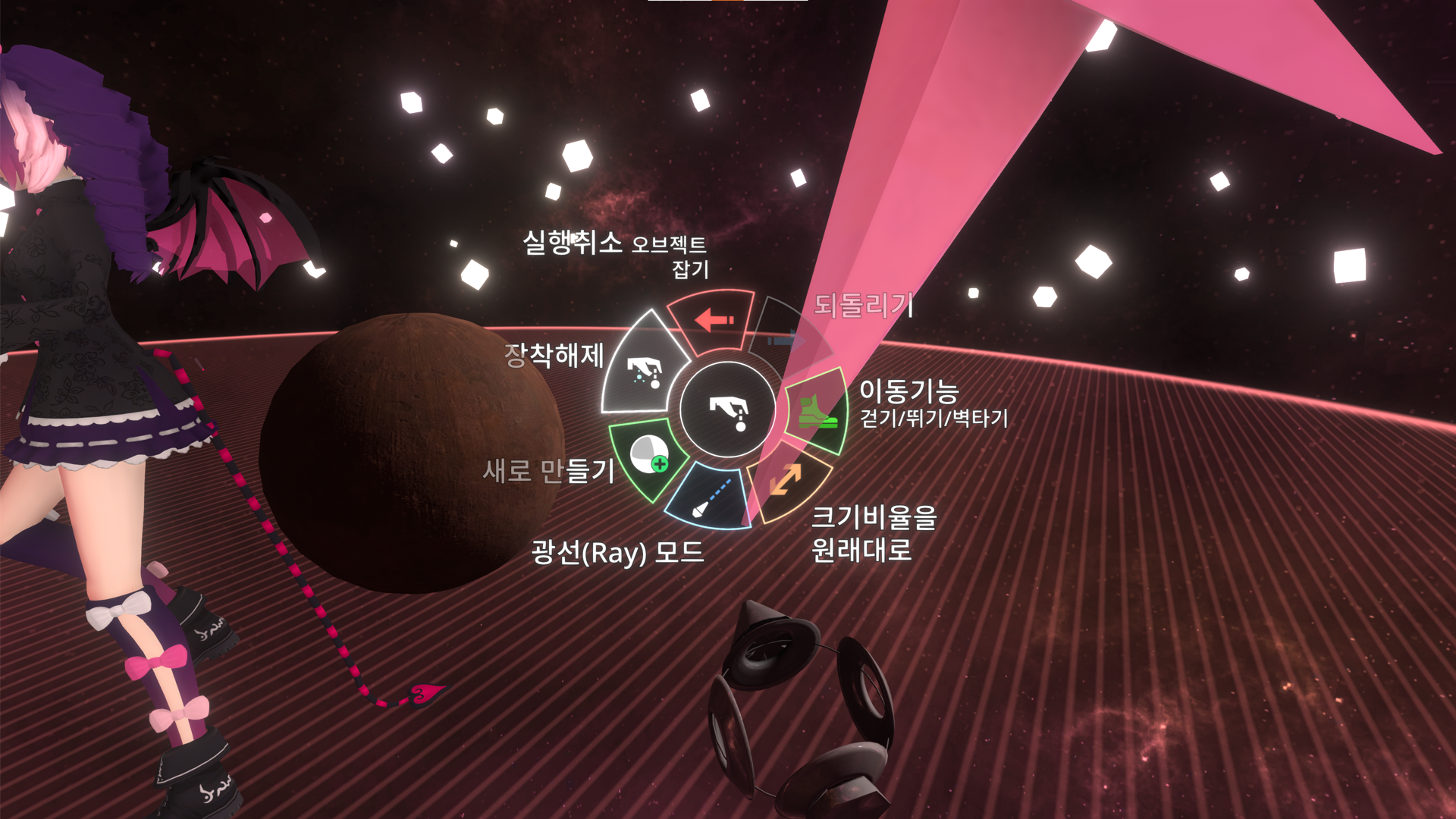 방향도 크기도 VR을 착용한 상태라면 손짓 만으로 변경 할 수 있지만 좀더 정확한 조절을 위해서 필요 할 수 있고 PC로 접속하는 유저에게는 마우스 컨트롤 보다는 이쪽이 훨씬 정확하고 쉽습니다. 여기서 부터는 다양한 기능들을 접 할 수 있기 때문에 훨씬 전문적인 분위기로 변합니다.