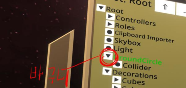 여기서는 예제로 그라운드 서클(GroundCircle)을 수정하겠습니다. 게임을 처음 시작하면 보이는 세상에서 유저가 서있는 발판 즉 땅입니다.