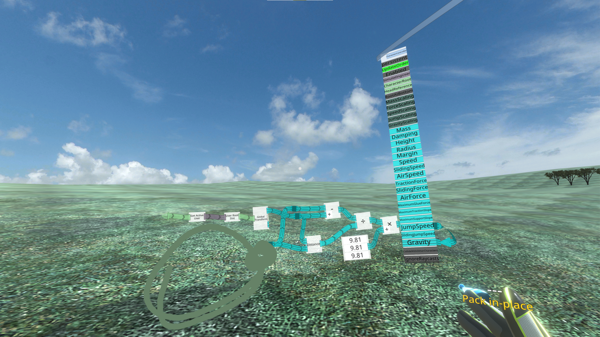 어디서 본건지 기억 안나지만 네오스 오피셜 정보인걸로 기억한다. 네오스 VR에는 Gravity라는 단어가 보임에도 불과하고 이 단어를 바탕으로 검색한 결과가 중력을 부여하거나 조작할 수 있는 기능이 일절 없다는 내용이었다. 그래서 그런지 그것과 관련된 어떠한 영상도 찾을 수 없었고 그래서 나는 Moon Landing 맵의 비밀을 파헤치기가 매우 어려웠는데 처음에는 컴퍼넌트 같은 연결하는 도구 중에 응용할 수 있는 것이 있는 줄 알았다.