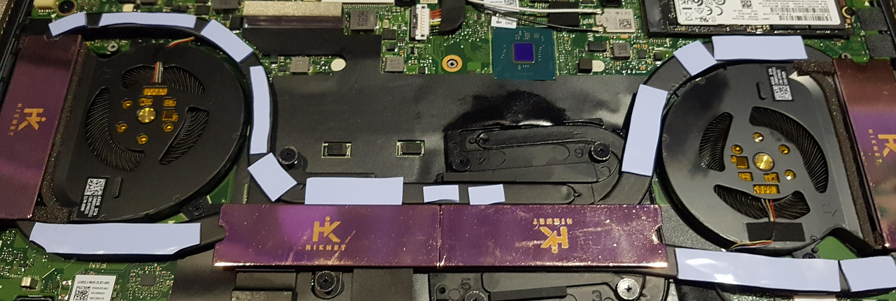 발열 1편은 노트북에 바람을 넣을 생각이었기 때문에 덕지덕지 히트싱크와 써멀 패드를 붙였고 아래 사진이 그 결과이다.