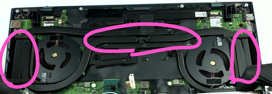 - 2.5mm = 구리 1mm 2개 0.5mm 써멀 패드를 붙이고 히트파이프와 노트북 하판에 써멀 구리스