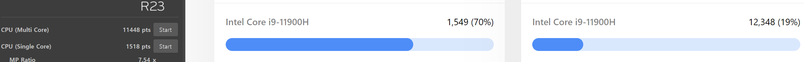 중요 목표는 프로세스 100%로 일상 생활 할 수 있게 만들기 였지만 발열로 AS를 받은 경험있기 때문에 겁이 나서 99%로 사용할 생각이다. 99% 상태에서는 발열은 많이 내려가지만 CPU의 실 성능은 3~50% 정도 하락하게 된다. 이 성능 차이는 3D Mark로는 알기 어렵다.