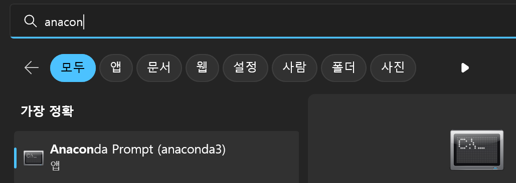 또는 권장으로 anaconda를 설치 했으니 이걸 관리자 권한으로 실행하는것입니다.